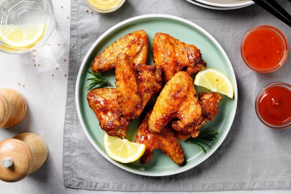 1 kg kanan koipia tai koipaloja, 1 kg perunoita, 300 g herkkusieniä, 2 sipulia, 300 g smetanaa, 3–4 valkosipulinkynttä, suolaa, pippuria, kanamausteita, kasviöljyä.